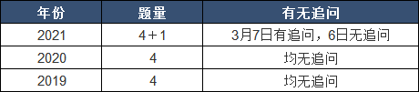 近三年,只有2021年3月7日的第2題有一個追問,這一天的題量由4道增加至5道。而且同一年份,竟然兩天不同題量,何嘗不是一次試點創(chuàng)新。因此,今年為了區(qū)分不同類別的難易,A類職位可能會繼續(xù)增加追問,尤其是將追問放在前面兩道題,無形之中加大面試難度。