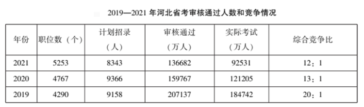 2022年河北省考公告預計2-3月份發(fā)布,備考已經刻不容緩。河北公務員考試網(wǎng)為你帶來2019-2021年三年河北省省考數(shù)據(jù),小伙伴們記得收藏哦 ~