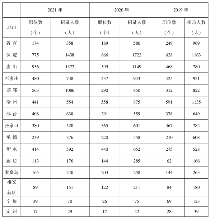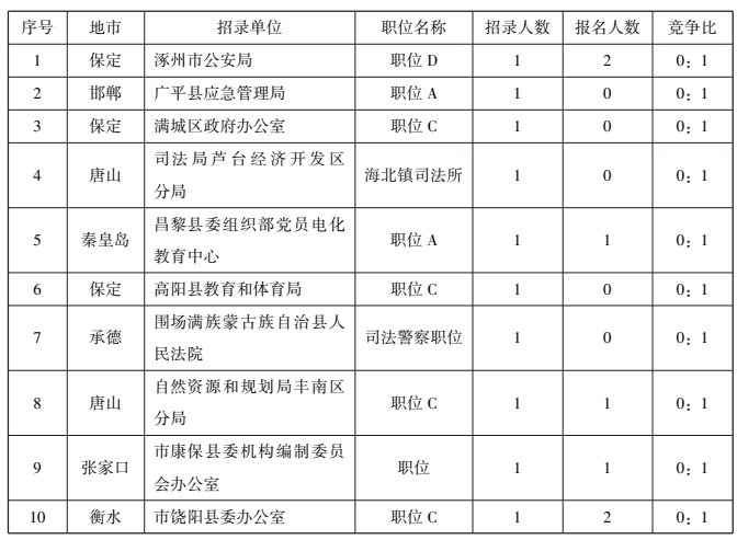 2021 年河北省考崗位最小競爭均比為 0: 1,具體參考見下表。