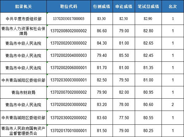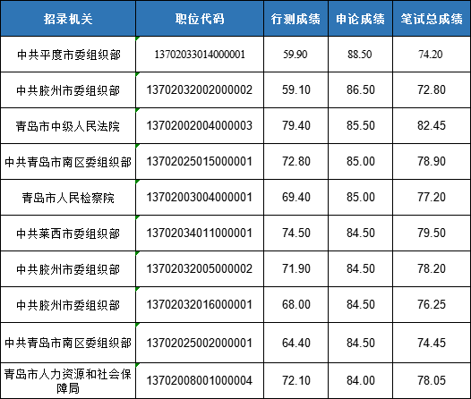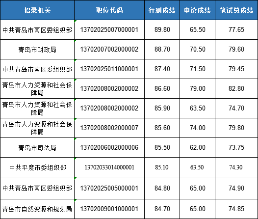 青島進(jìn)面名單申論成績前十成績