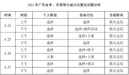 2021年廣東省考面試共計(jì)4天時(shí)間,4月24-27日。每天上下午各一套題, 共 計(jì)八套題。具體情況見下表: