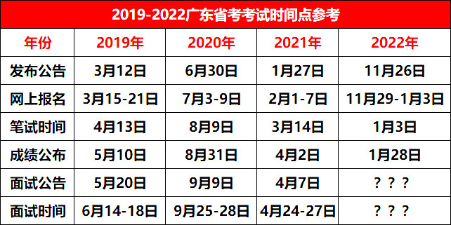 廣東成績已出,面試即將來臨。而你的備考時間,卻所剩不多!為什么這么說,我們按照往年的時間線來看看:2019年省考成績公布至面試的備考時間有44天;2020年省考成績公布至面試備考時間僅有25天;2021年省考成績公布至面試的備考時間只有短短22天。
