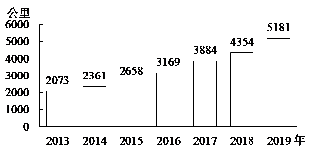 ?。?)2014~2019年間,全國地鐵運(yùn)營線路長度同比增長20%以上的年份有幾個?