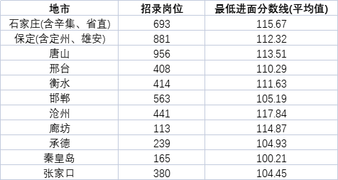 小編整理了近三年河北省考11地市的崗位招錄情況以及進(jìn)面的數(shù)據(jù)統(tǒng)計(jì)和進(jìn)面 平均值以供各位考生參考。