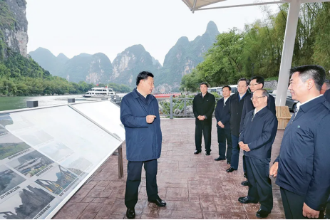 2021年4月25日至27日,中共中央總書記、國(guó)家主席、中央軍委主席習(xí)近平在廣西考察。這是25日下午,習(xí)近平在桂林市陽(yáng)朔縣漓江楊堤碼頭,了解漓江流域綜合治理、生態(tài)保護(hù)等情況。新華社記者鞠鵬/攝