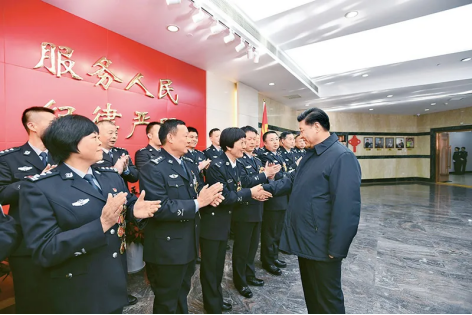 2019年2月1日,中共中央總書記、國(guó)家主席、中央軍委主席習(xí)近平在北京看望慰問(wèn)基層干部群眾,考察北京冬奧會(huì)、冬殘奧會(huì)籌辦工作。這是1日上午,習(xí)近平在北京市公安局,同公安英模和干警代表一一握手,向全國(guó)廣大公安干警致以新春祝福。新華社記者謝環(huán)馳/攝