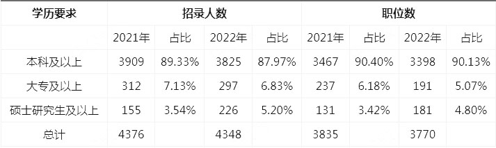 二、??茖W(xué)歷可報考 九成以上職位要求本科學(xué)歷