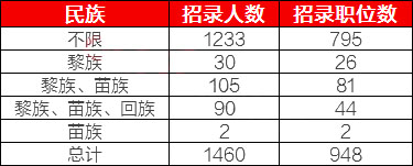 海南省考招錄對民族和戶籍都有要求,有153個職位要求考生為少數(shù)民族(黎族、苗族、回族),占總招錄職位數(shù)的16%;有449個職位對考生的戶籍有專門要求,占總職位數(shù)的47%。