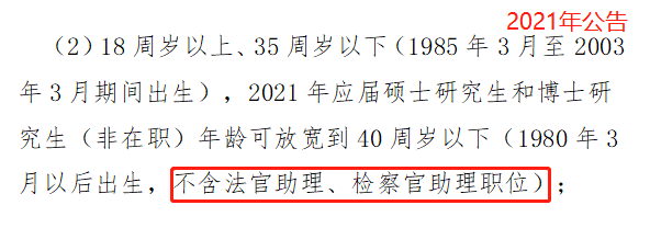 2022年公告指出:2022年應(yīng)屆碩士研究生和博士研究生(非在職)40周歲以下的今年取消報(bào)考法官助理和檢察官助理職位的限制,所以報(bào)考這兩個(gè)崗位的競爭會(huì)相對變大一些,想要報(bào)考的考生需認(rèn)真考量。