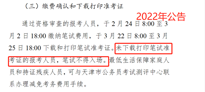 對比2021年公告,可以看出2022年強(qiáng)調(diào)了未下載打印筆試準(zhǔn)考證的報(bào)考人員,筆試不得入場。所以體提醒廣大考生一定提前打印好準(zhǔn)考證,以免影響考試。距離考試還有32天,提醒廣大考生早日備考!
