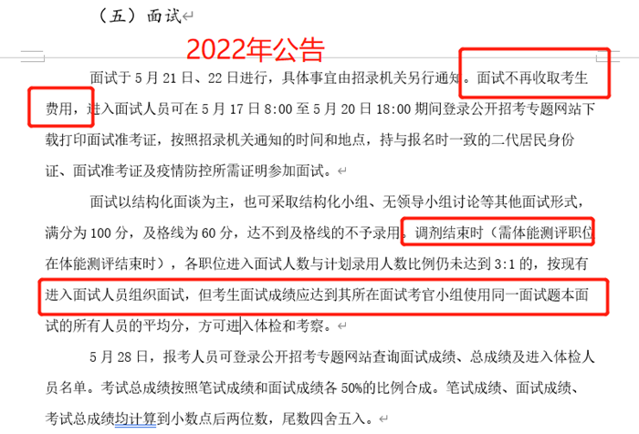2022年的面試階段需要考生尤其關(guān)注,首先一個(gè)好消息就是面試取消收費(fèi)。還有一個(gè)重要的變革就是調(diào)劑結(jié)束后,未達(dá)比例的仍然進(jìn)行面試,小伙伴們不用擔(dān)心自己考得好報(bào)省無門啦,只要你的筆試成績足夠高,你就能順利進(jìn)入面試階段。而從出成績到面試僅有不足一個(gè)月的時(shí)間,你如何做到“考生面試成績應(yīng)達(dá)到其所在面試考官小組使用同一面試題本面試的所有人員的平均分,方可進(jìn)入體檢和考察?!边@一點(diǎn),無疑對考生的要求更加嚴(yán)格!
