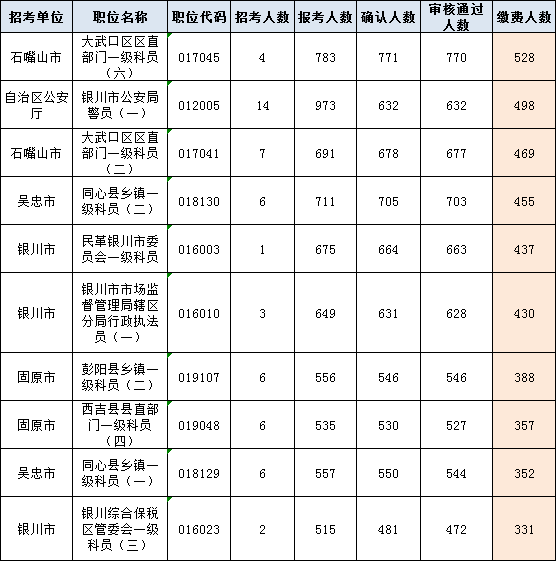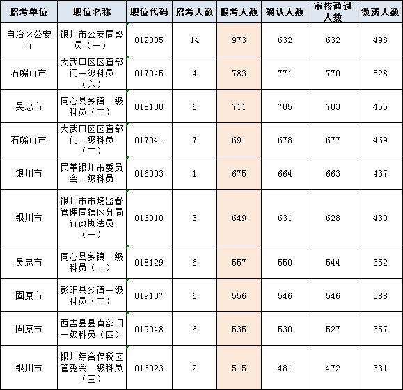 以下為報考人數(shù)最多的前十崗位