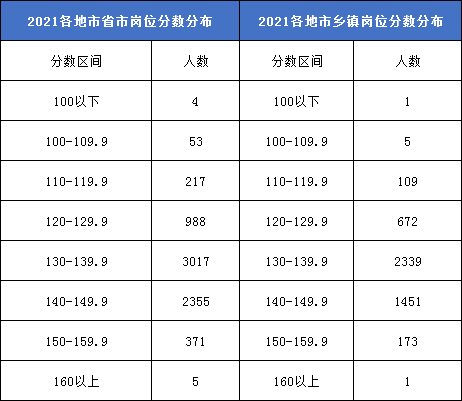 左邊是普通崗位,右邊是鄉(xiāng)鎮(zhèn)崗位。根據(jù)以上表格可知,不管是鄉(xiāng)鎮(zhèn)崗位還是普通崗位,分?jǐn)?shù)都集中在130-139.9分之間,那么可想而知,在面試過程中競爭壓力有多大,各位考生一定要認(rèn)真?zhèn)淇肌?/p>