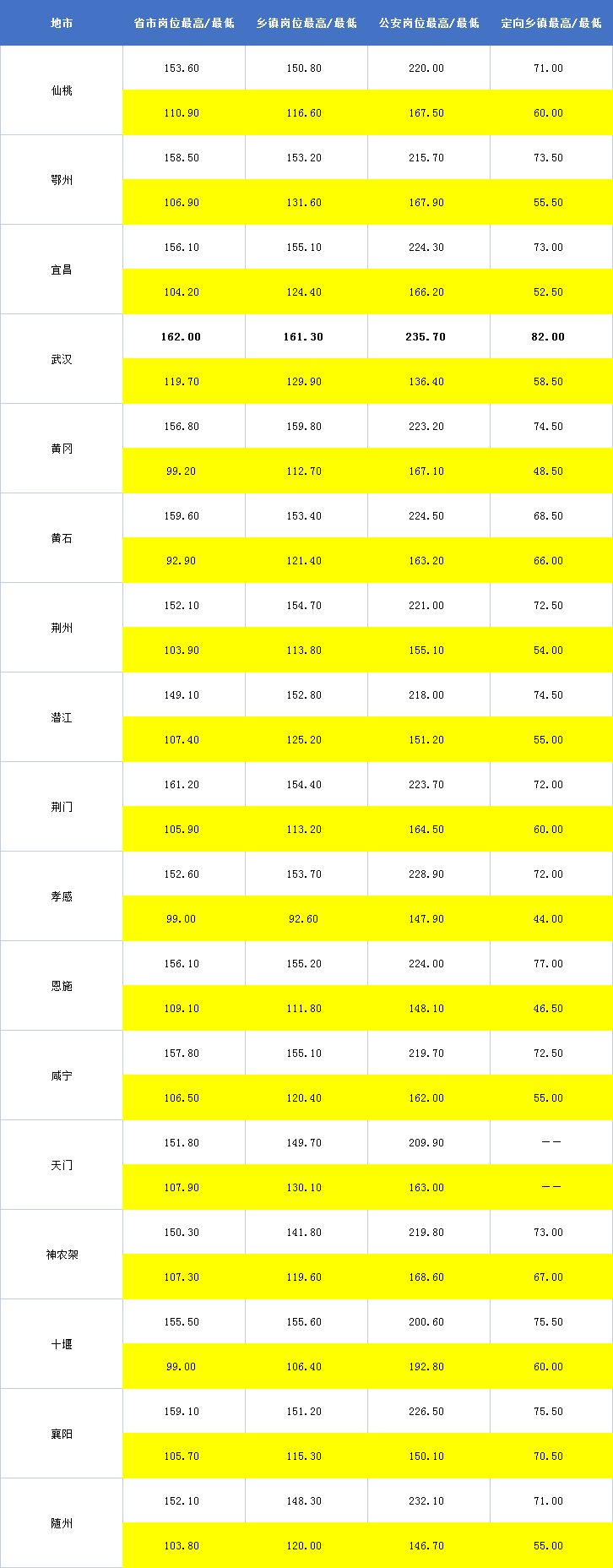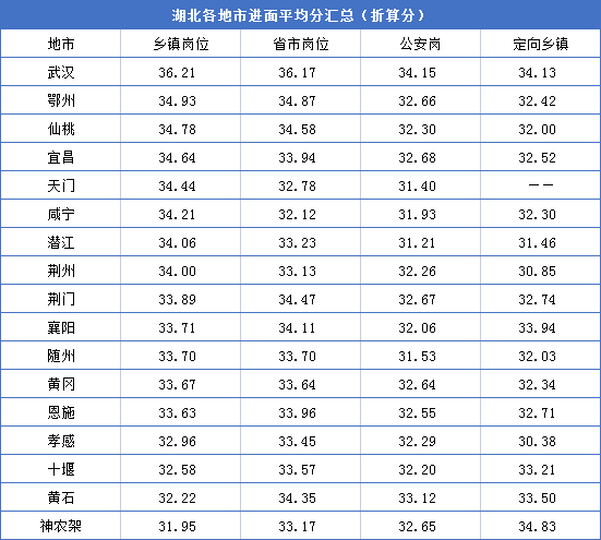 二、2021湖北省考地市各崗位進(jìn)面平均分(不含省直)