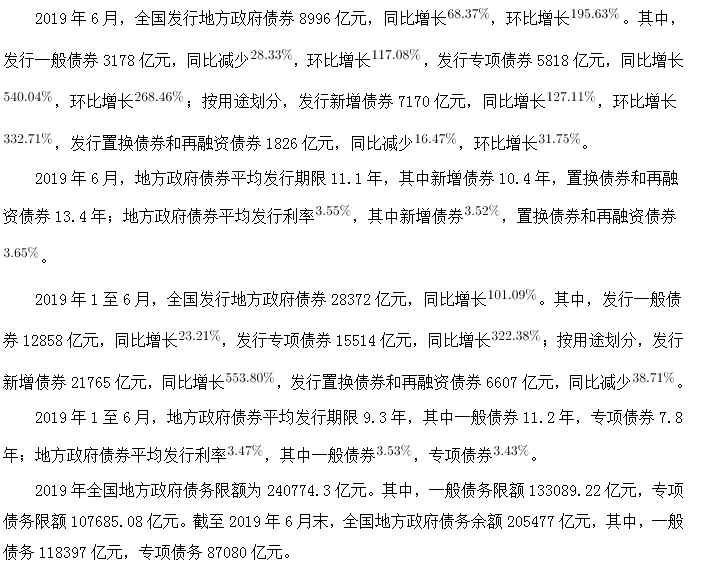 91.2019年6月,全國(guó)發(fā)行的地方政府債券比2018年6月多約:( )