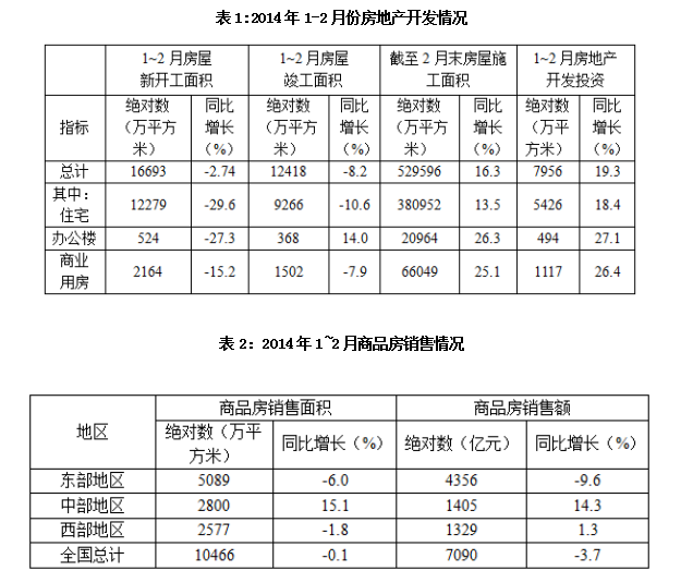 2014年1-2月份,我國房地產(chǎn)業(yè)土地購置面積4062萬平方米,同比增長
