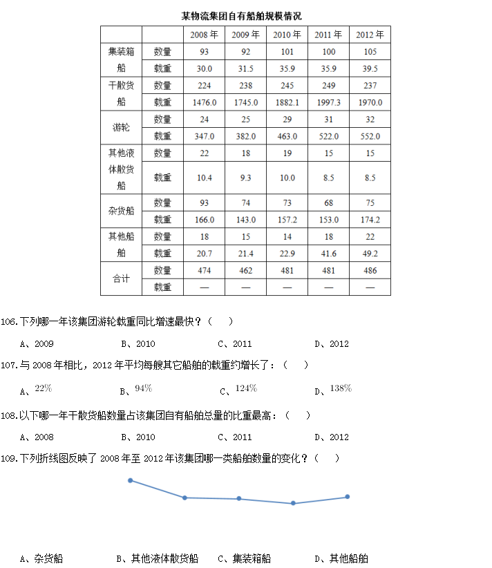 110.以下關(guān)于2008年至2012年間該集團(tuán)自有船舶規(guī)模的說法正確的是:( )