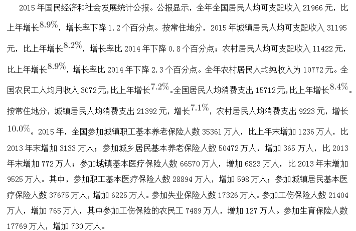 87.2015年,下列指標(biāo)中同比增長(zhǎng)最快的是:( )