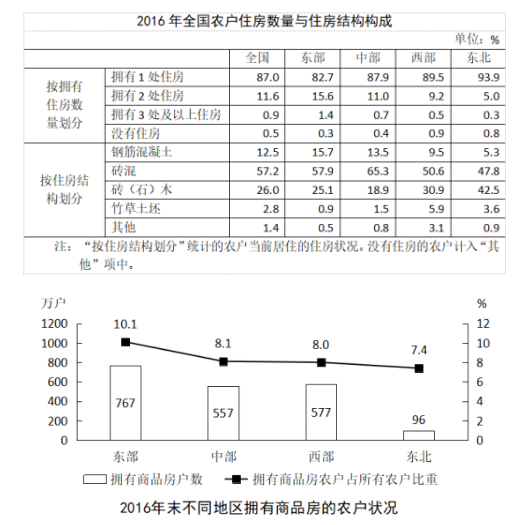 95.根據(jù)2016年末全國(guó)農(nóng)戶(hù)住房情況,能夠從上述資料可以推出:( )