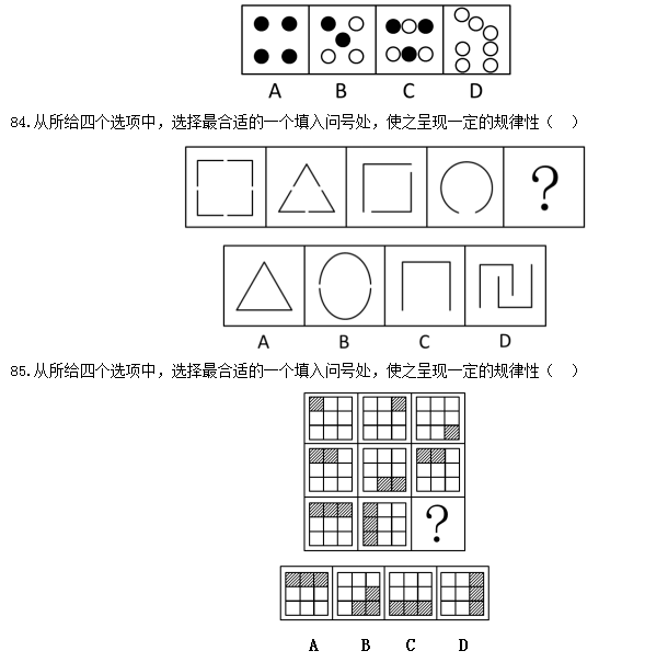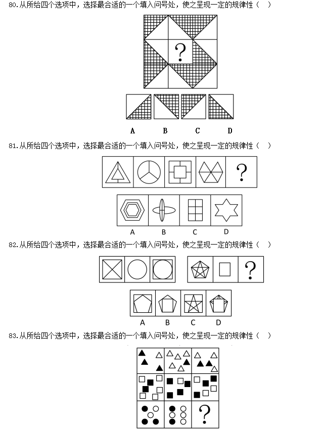 79.從所給四個(gè)選項(xiàng)中,選擇最合適的一個(gè)填入問號(hào)處,使之呈現(xiàn)一定的規(guī)律性( )