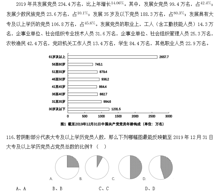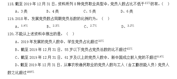 117.截至2019年12月31日,新中國(guó)成立后至黨的十八大前入黨的人數(shù)約是其余時(shí)間入黨人數(shù)的:( )