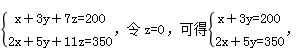 例3:現(xiàn)有甲、乙、丙三種貨物,若購(gòu)買甲1件、乙3件、丙7件共需200元;若購(gòu)買甲2件、乙5件、丙11件共需350元。則購(gòu)買甲、乙、丙各1件共需( )元。