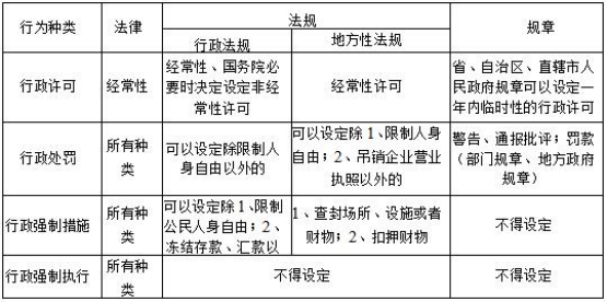 行政許可、行政處罰和行政強(qiáng)制設(shè)定權(quán)限的比較