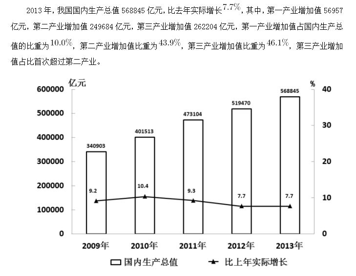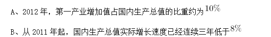 D、2013年,第二產(chǎn)業(yè)增加值占國(guó)內(nèi)生產(chǎn)總值的比重最大