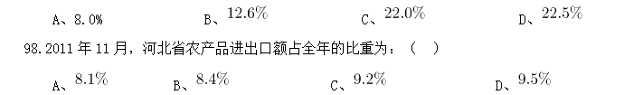97.2011年,石家莊農(nóng)產(chǎn)品出口額占全省的比重為:( )