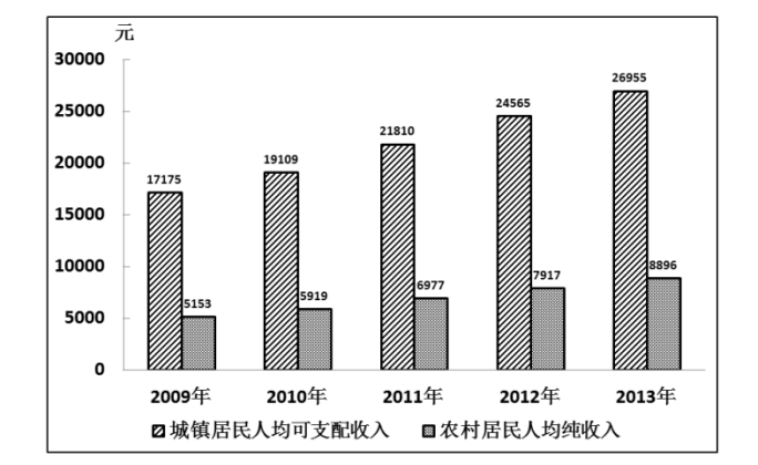 C、2009—2013年,我國(guó)城鄉(xiāng)居民收入比最高的年份是2010年