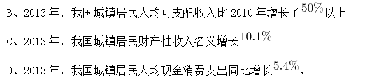 A、2013年,在我國(guó)城鎮(zhèn)居民人均總收入中,轉(zhuǎn)移性收入名義增長(zhǎng)最快