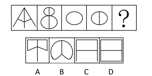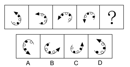 69. 請選擇最適合的一項填入問號處,使之符合之前四個圖形的變化規(guī)律:( )