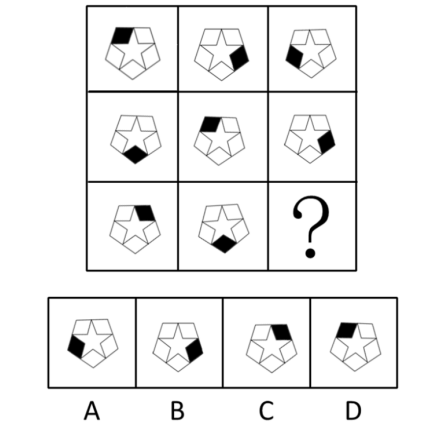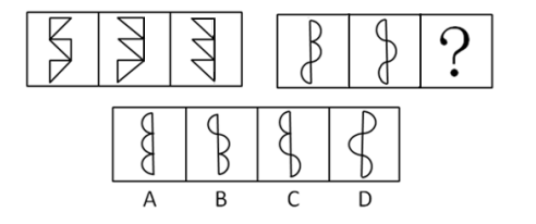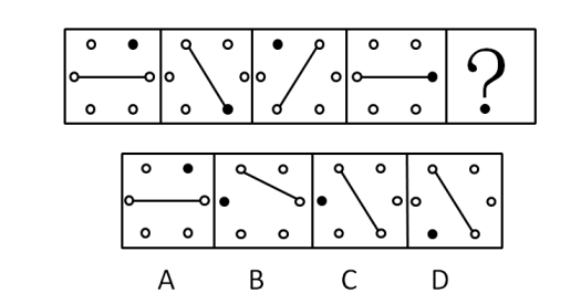 68. 請選擇最適合的一項填入問號處,使之符合之前四個圖形的變化規(guī)律:( )