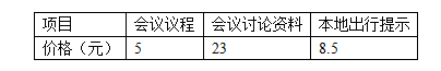 77. 某次會議需要印制會議材料,參會人員共計300人,每人發(fā)放一份會議議程,每5人共用一份會議討論資料,每間客房(每間住2人,無單人)發(fā)放一份本地出行提示。會議材料的印制價格如下,則印制會議材料一共需要花費多少元:( )