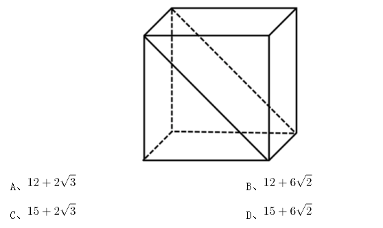 78. 將一個表面積為18平方厘米的正方體沿對角線切成兩塊對稱的三棱柱(見下圖),并將這兩塊三棱柱重新拼接成一個大的三棱柱。則這個大三棱柱的表面積最大為多少平方厘米?( )