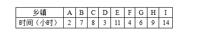 80.某機構要派工作人員到9個鄉(xiāng)鎮(zhèn)進行業(yè)務檢查。工作人員每到一個鄉(xiāng)鎮(zhèn)進行業(yè)務檢查后必須返回單位匯報,這一行程的總時間見下表。如果這項工作要在16個小時內完成,則該單位至少要派出多少名業(yè)務員:( )