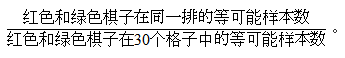 無論先放紅色棋子再放綠色棋子,還是先放綠色棋子再放紅色棋子對結(jié)果沒有影響,所以這道概率問題可以用定位法解決。分析總事件時(shí)固定紅色棋子以后,再安排綠色棋子,有29個(gè)位置可以選擇,所以總事件的等可能樣本數(shù)是29。分析A事件時(shí)固定紅色棋子以后,綠色棋子要和紅色棋子在同一排的話,綠色棋子還有5個(gè)位置(因?yàn)橐还?排30個(gè),那么一排就是6個(gè),當(dāng)紅色棋子放入后該排還剩5個(gè)位置),即A事件的等可能樣本數(shù)是5。故概率為
