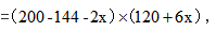 因此本題所求為使得一元二次函數(shù)取值最大的解。通過列式可知,分別使得200-144-2x和120+6x等于0,可以解得函數(shù)的兩個(gè)根為