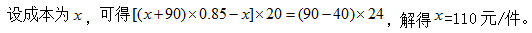 【答案】A【解析】根據(jù)題意,已知按八五折售20件利潤與每件減價(jià)40元售24件相同,