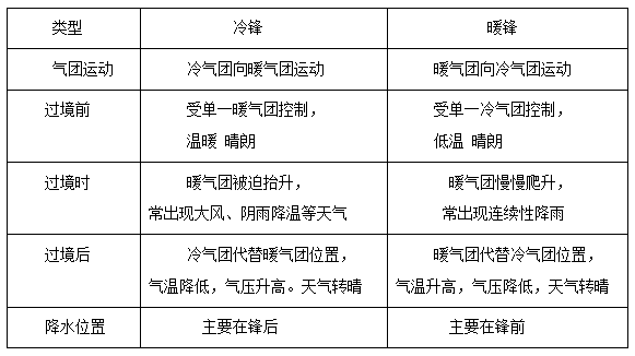 冷鋒指的是冷氣團主動向暖氣團移動,冷鋒過后冷氣團占領(lǐng)主導(dǎo)地位。當(dāng)冷暖氣團相遇時,由于冷空氣的密度小于暖空氣的密度,故冷氣團便會插在暖氣團的下面,推動暖氣團向前運動,從而使得暖氣團被迫抬升,達到一定條件時,便形成云、雨等天氣。