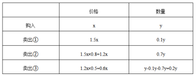 最終所獲得的利潤(rùn)率=(總售價(jià)-總成本)÷總成本=(1.5x×0.1y+1.2x×0.7y+0.6x×0.2y-xy)÷xy=0.11。答案選A。