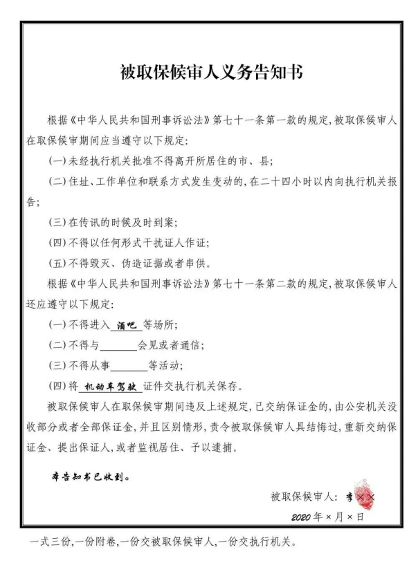 實(shí)務(wù):解除取保候?qū)?/span>的條件以及被取保候?qū)徣肆x務(wù)告知書